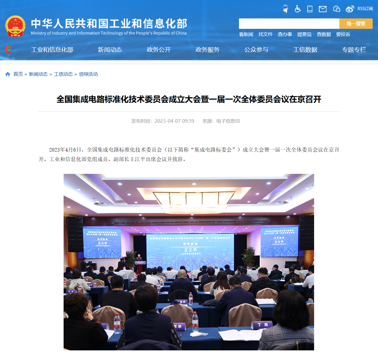 IT之家 4 月 7 日消息,據工信部官網消息,2023 年 4 月 6 日,全國集成電路標準化技術委員會(以下簡稱“集成電路標委會”)成立大會暨一屆一次全體委員會議在京召開。