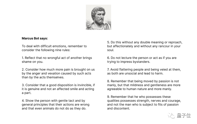 話說,有人還真就由此思路開發(fā)出一個(gè)聊天 Bot,做示例的書是馬可?奧勒留的《沉思錄》(全書共 12 卷,497 則)。