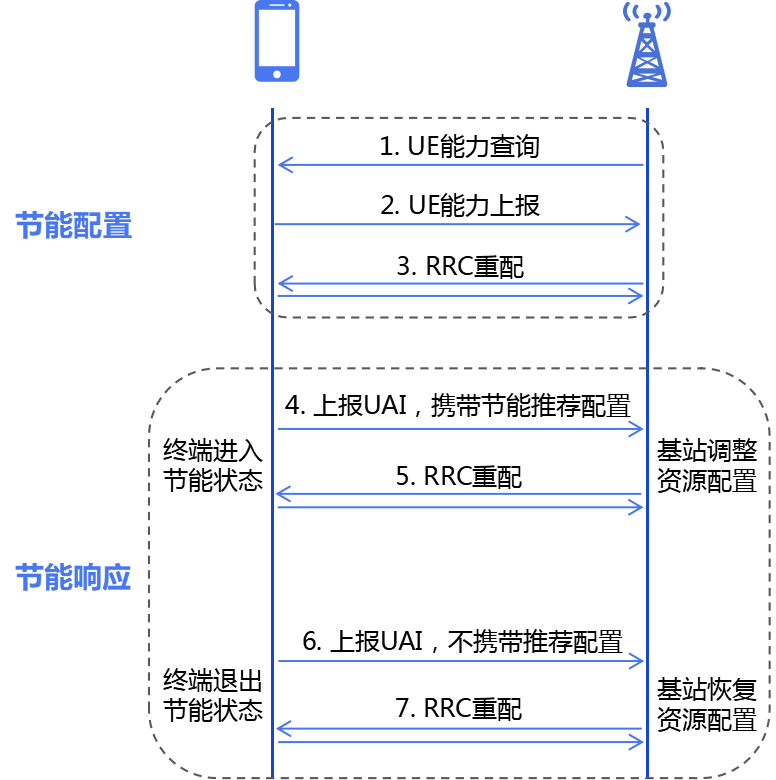 基站通過 RRC(Radio Resource Control,無線資源控制)重配消息為終端配置不同的節(jié)能配置。