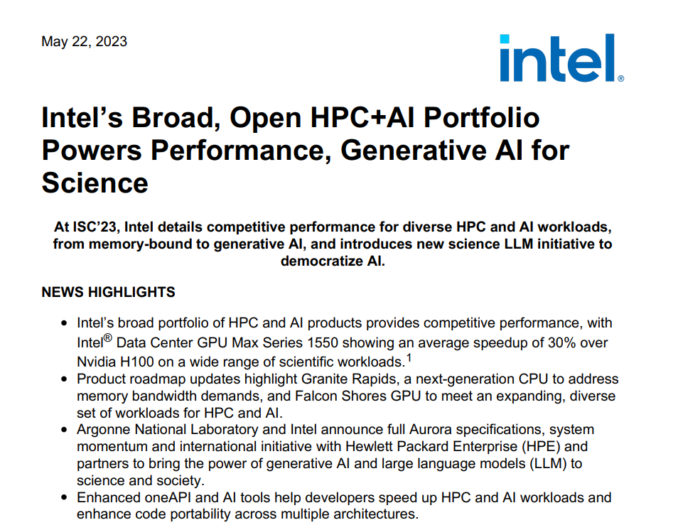 5月22日,在德國漢堡舉行的高性能計算展上,英特爾披露了公司未來AI算力戰略部署的最新細節,為追趕英偉達又增添了一筆重磅砝碼。