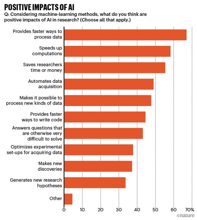 相關調查結果以“AI and science: what 1,600 researchers think”為題,已發表在Nature上。