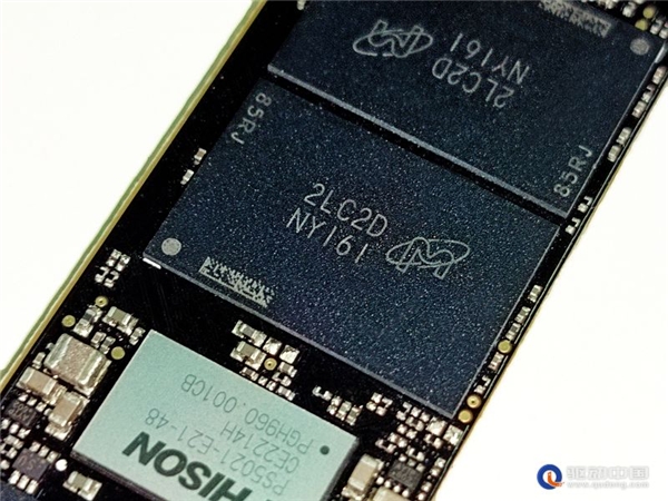 緩存部分同樣是來自美光的8Gb DDR4高速緩存,而閃存則為176層堆疊的3D TLC顆粒,所以依然對QLC抱有成見的用戶大可放心了,其單顆粒便可實現1TB的存儲空間,相比此前P5的96層堆疊進一步提升了存儲密度,有效降低了M2. 2280尺寸規格下的貼裝工序。