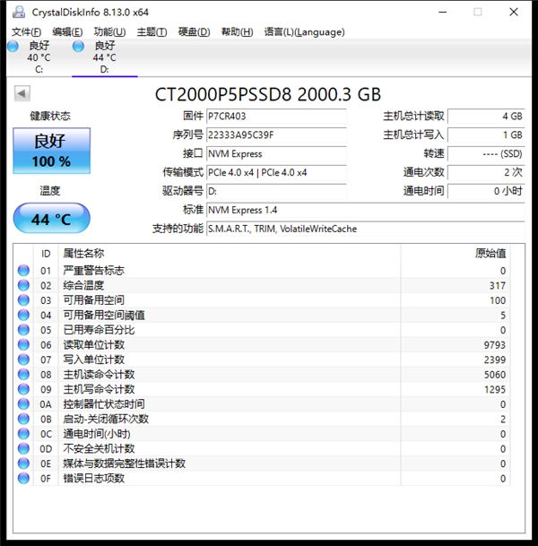 通過外包裝的標識也能看到,我們手上的產品產自馬來西亞,官方提供長達5年的有限質保,而所謂有限質保就是同步規定了寫入量,其與英睿達P5相同,250GB為150TBW,500GB為300TBW,1TB為600TBW,2TB為1200TBW。從量級上看,如果不是像去年宛若鬧劇的硬盤礦,絕大部分消費者很難達到這樣的擦寫量級,加上電子消費品平均使用周期考量,可以說基本上已經覆蓋了常規生命期內的質保,更何況,英睿達官方公布P5系列的平均無故障壽命長達200萬小時,進一步彰顯了原廠品質和可靠性。