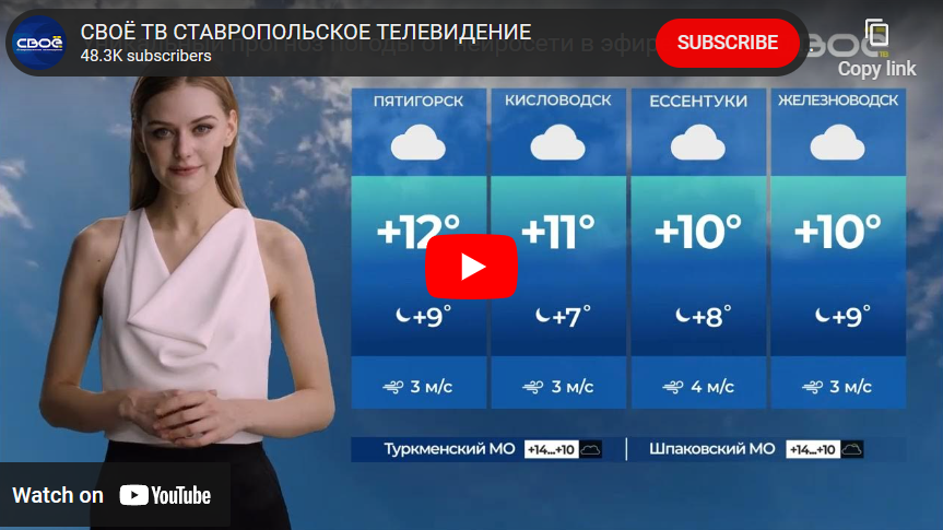 據 Svoye TV 介紹,該電視臺于周二首播了其新節目“Future Forecast”,展示了其 AI 天氣預報員 Snezhana Tumanova 的能力。